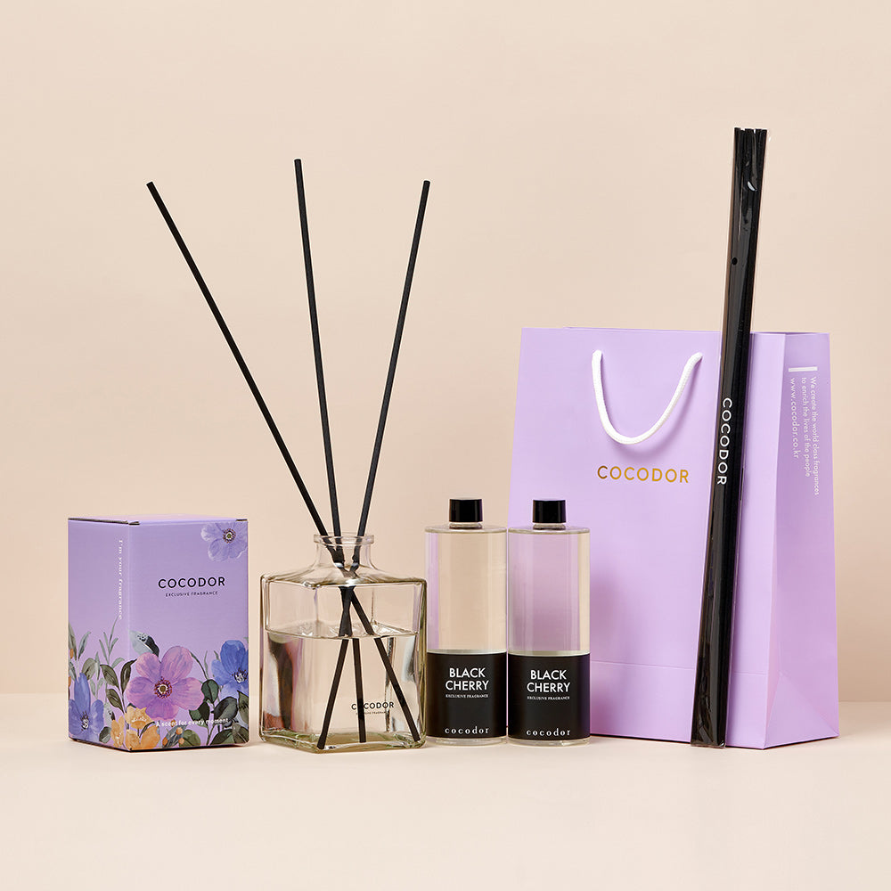 Object Square Bottle 1pc + Diffuser Refill (same scent) 500ml / 16.9oz 2pcs + Reed Stick 48cm 6pcs + shopping bag 1pc