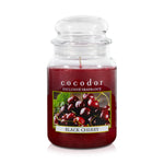 Black cherry candle is reminiscent of summertime. Great smell and is a large size. Glass jar with lid and rubber seal. Lights great and puts a subtle aroma of cherries in the space. Could be comparable to a Yankee candle but for half the price.