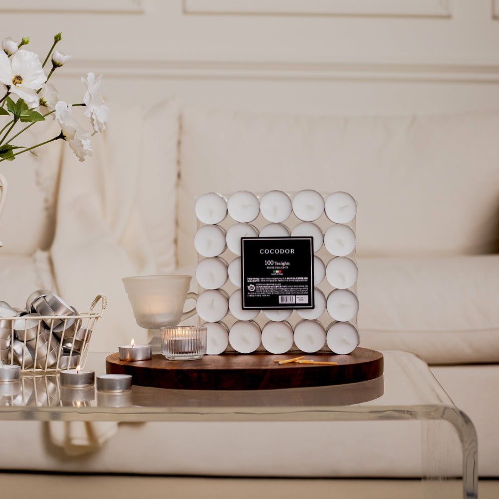 ティーライト キャンドルは屋内および屋外のイベントに最適です。スパ、バスルーム、ヨガ ルーム、寝室で使用できます。ガラス製のティーライト ホルダーにもぴったり収まります。