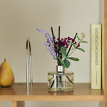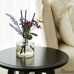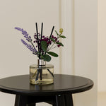 エレガントなガラスボトルは 6.7 オンスで、リードスティック、本物のプリザーブドフラワー、ユーカリとラベンダーのスティックが付属しています。