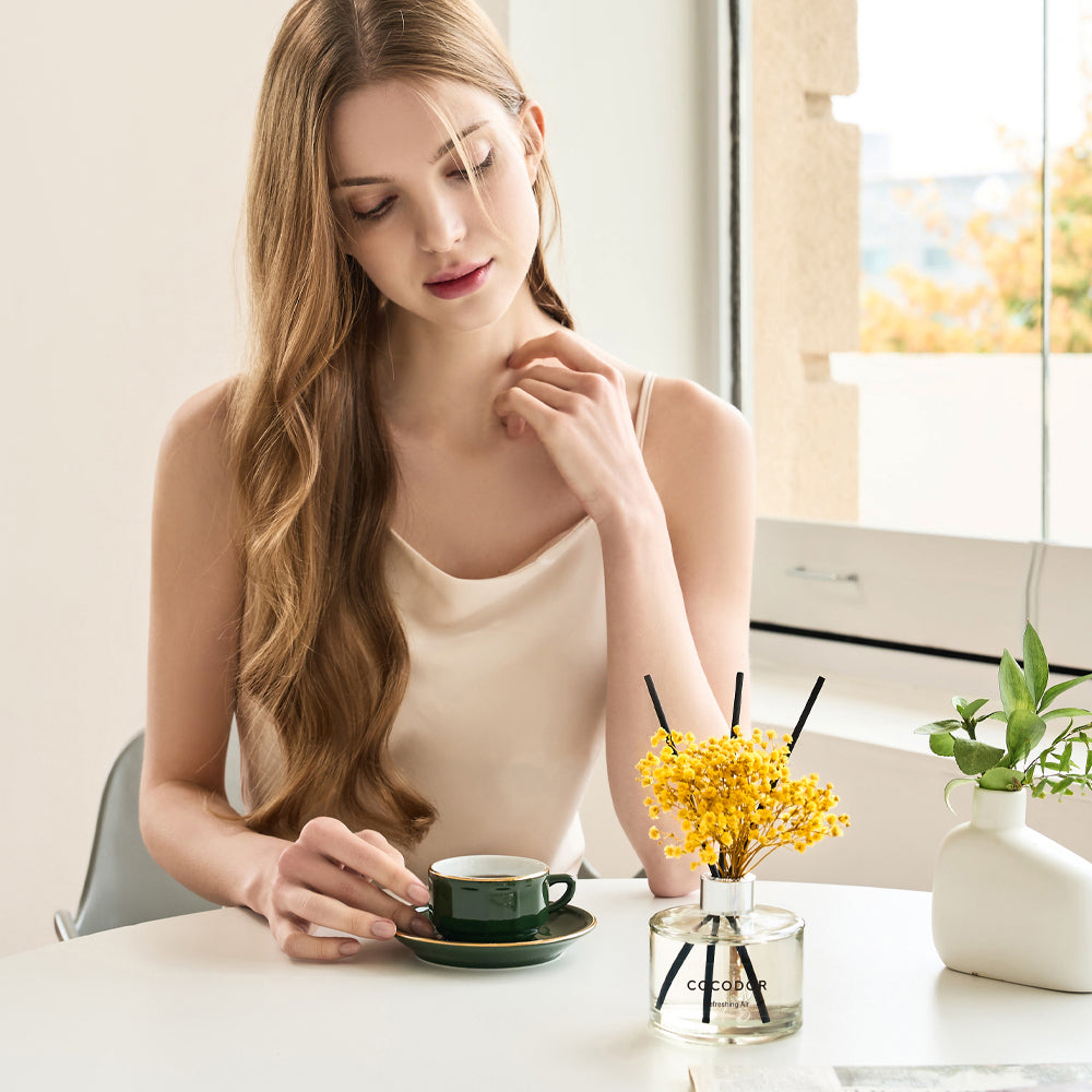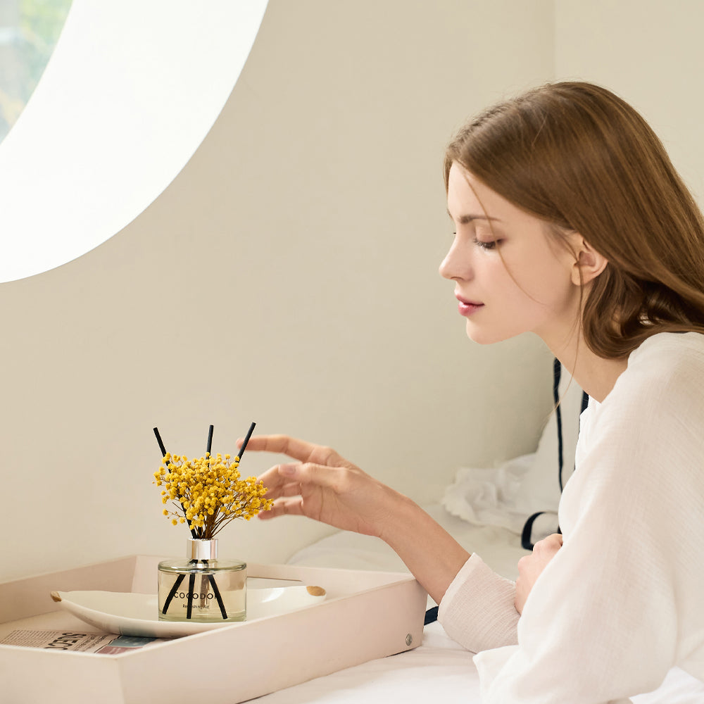 ディフューザー 200ml / 6.7オンス + リードスティック 5本 +プリザーブドフラワー